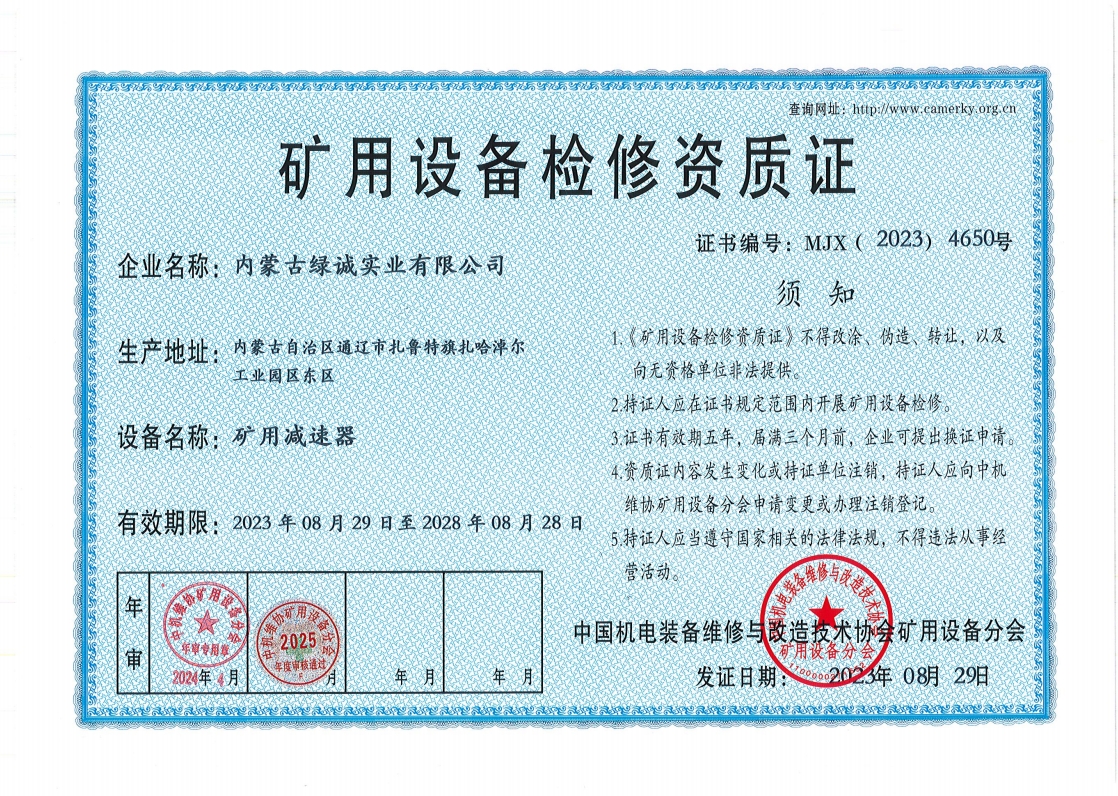 2018年我公司通過(guò)中國(guó)機(jī)電裝備維修與改造技術(shù)協(xié)會(huì)礦用設(shè)備分會(huì)審核并取得了9項(xiàng)礦用設(shè)備檢修資質(zhì)證書(shū)。公司本著“誠(chéng)信為本 質(zhì)量為先 全心全意為客戶 ”的服務(wù)理念,圓滿完成各個(gè)廠礦的機(jī)械維修及配套服務(wù),期待與您共同合作。